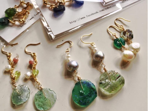 主にローマ帝国時代に作られたガラスで同じ色や形などは無い1点物。イスラエルやレバノン、アフガニスタンで取れる物で遺跡発掘の時に一緒に出土されるバラバラになったガラスを再利用して製作しております。当店ではアフガニスタンで採れたガラスを使い製作してます。同じガラスがない為再販不可能商品となっております。